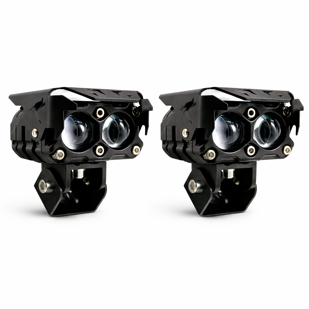 Enhance your motorcycle lighting with this Dual Projector Fog Light, built for riders who want power, safety, and durability. Equipped with two high-performance projector lenses, it delivers a sharp white high beam for clear night visibility and a yellow low beam for fog, rain, and dusty conditions. You also get warm white both-beam mode and an attention-grabbing flicker function.